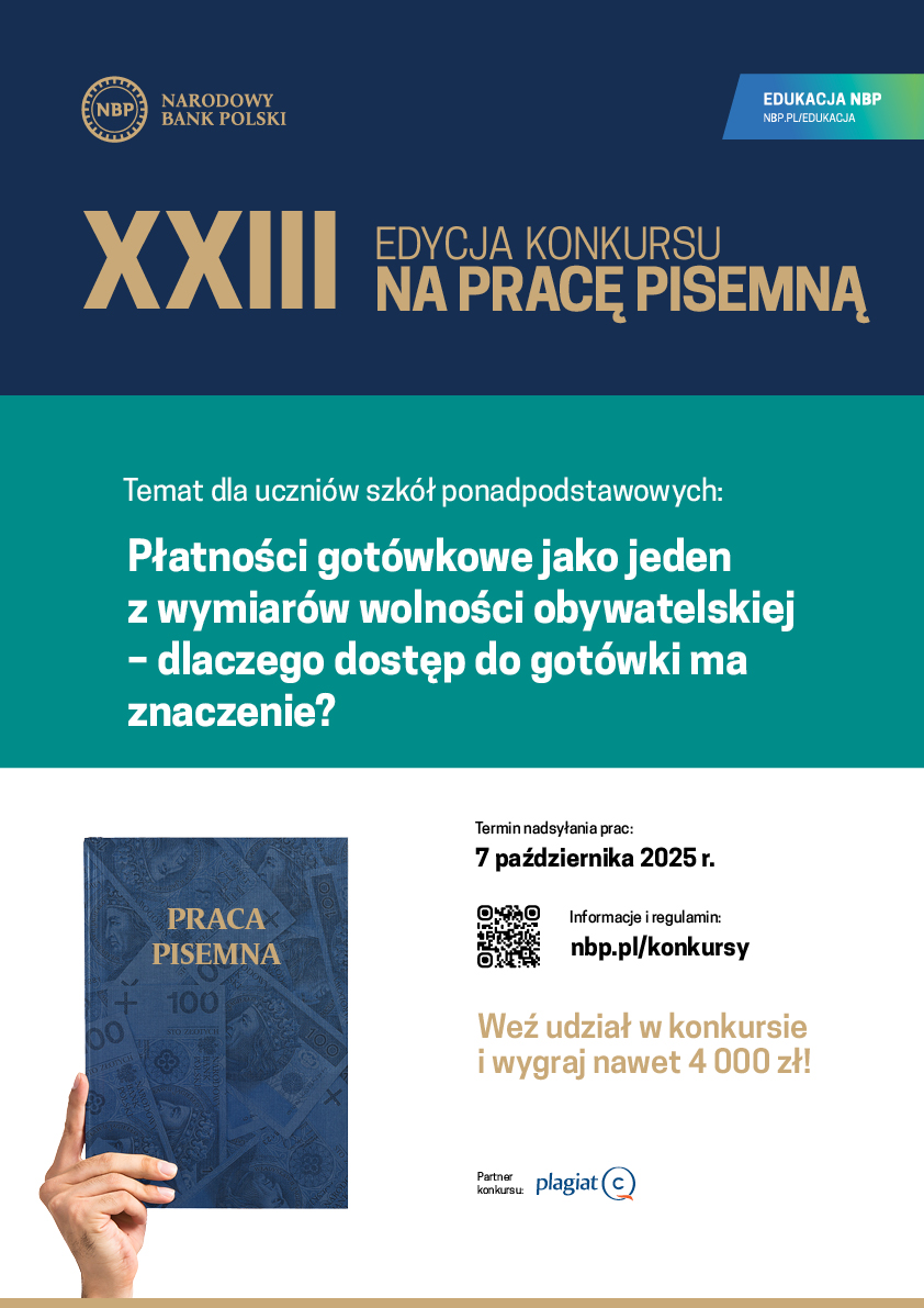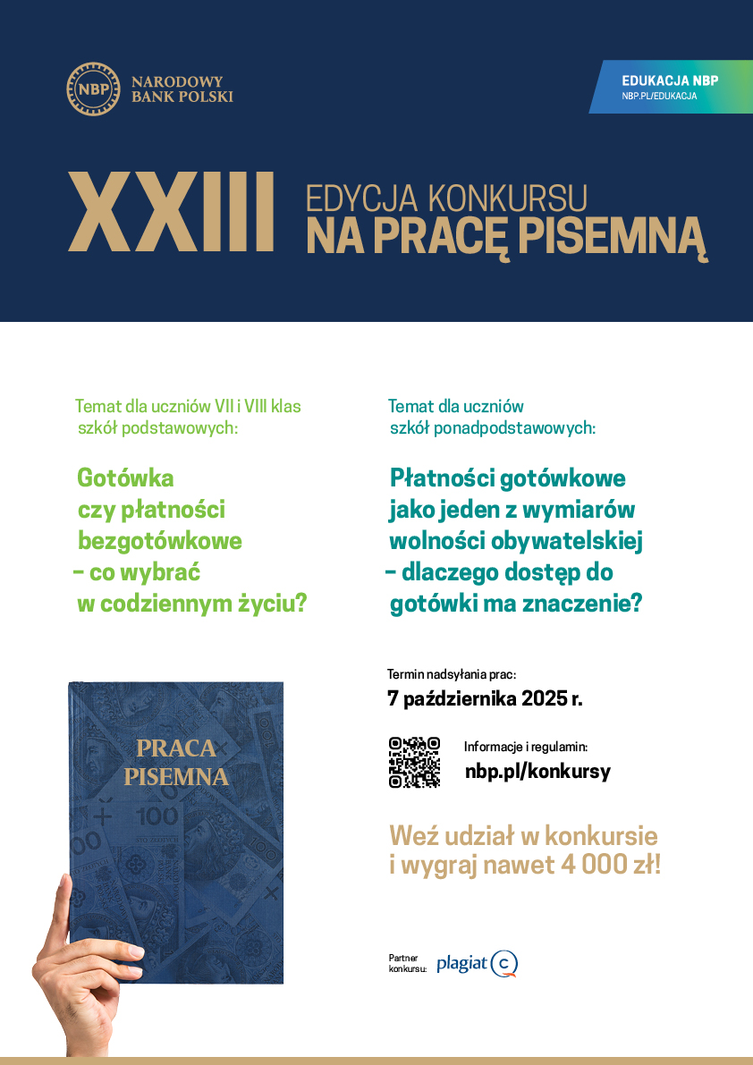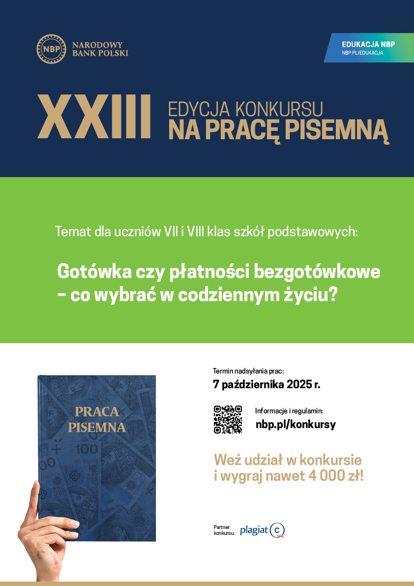 Narodowy Bank Polski po raz dwudziesty trzeci zaprasza do udziału w XXIII edycji Konkursu na pracę pisemną dla szkół podstawowych i ponadpodstawowych.