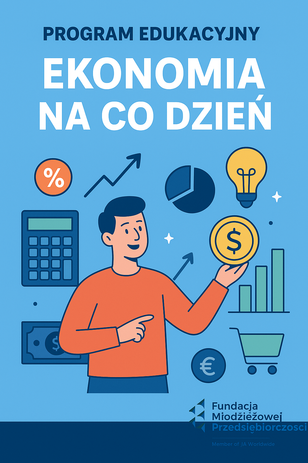 Fundacja Młodzieżowej Przedsiębiorczości zaprasza Państwa do udziału w ogólnopolskim programie edukacyjnym Ekonomia na co dzień. Celem programu jest nie tylko poszerzanie wiedzy uczniów z zakresu szeroko rozumianej wiedzy ekonomicznej, finansowej i społecznej, ale również realizacja podstawy programowej – zarówno w systemie nauki stacjonarnej, jak i zdalnej. Program Ekonomia na co dzień wykorzystuje nowatorskie metody pracy z uczniami, proponuje ciekawe, kreatywne i twórcze sposoby i techniki nauki oraz zapewnia narzędzia do weryfikacji wiedzy i umiejętności uczniów.