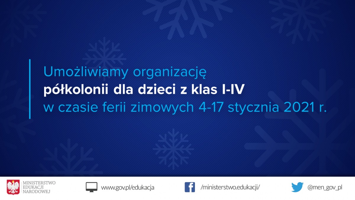 Możliwość organizacji półkolonii dla uczniów podczas ferii zimowych – komunikat MEN.